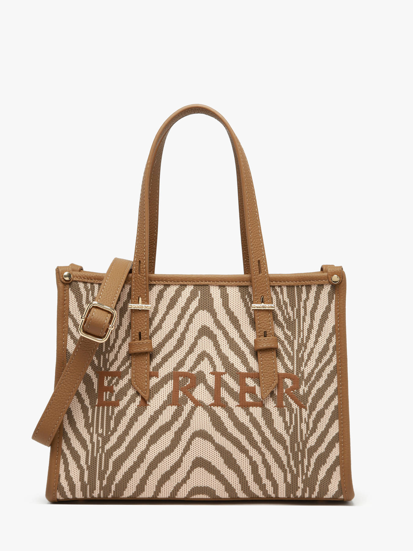 Le mini cabas SAFARI par ETRIER décline l’esprit audacieux de la ligne dans un format compact et résolument tendance. Confectionné en textile rehaussé de finitions en cuir, il se distingue par ses imprimés animaliers graphiques qui affirment un style fort et moderne. Pratique et léger, ce modèle taille S se porte à la main grâce à ses anses de 16 cm ou en bandoulière avec sa sangle réglable et amovible, pour s’adapter à toutes vos envies. Sa fermeture zippée assure la sécurité de vos essentiels, tandis qu’une poche zippée intérieure permet un rangement organisé. Un mini cabas stylé et fonctionnel, idéal pour accompagner vos journées estivales avec caractère et élégance.